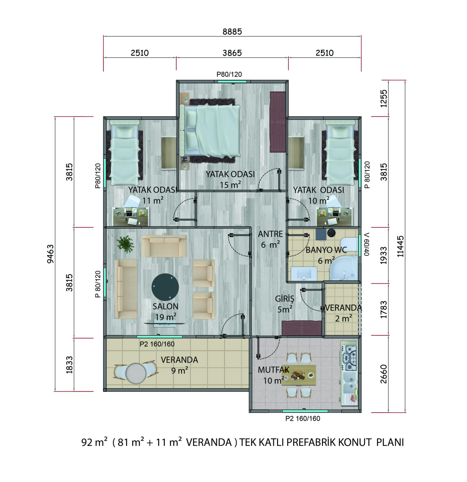 92m² Tek Katlı Prefabrik Konut